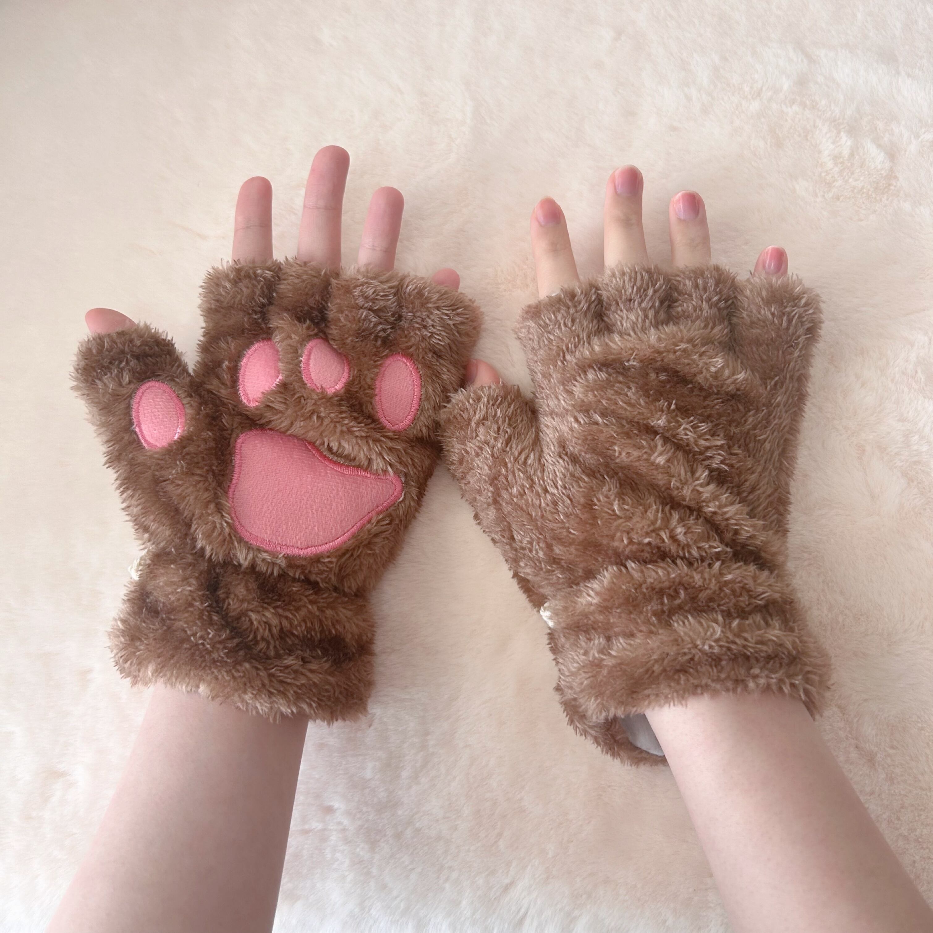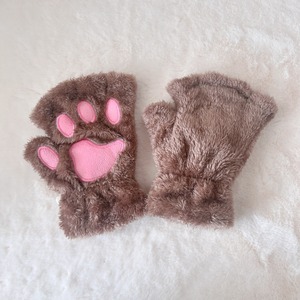 猫の手肉球 茶色 ハーフフィンガーグローブ ミトン